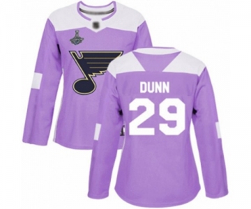 Women's St. Louis Blues #29 Vince Dunn Authentic Purple Fights Cancer Practice 2019 Stanley Cup Champions Hockey Jersey