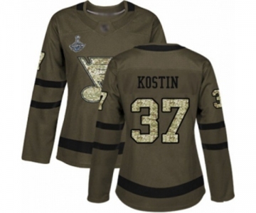 Women's St. Louis Blues #37 Klim Kostin Authentic Green Salute to Service 2019 Stanley Cup Champions Hockey Jersey