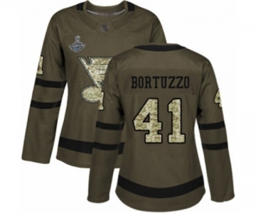 Women's St. Louis Blues #41 Robert Bortuzzo Authentic Green Salute to Service 2019 Stanley Cup Champions Hockey Jersey