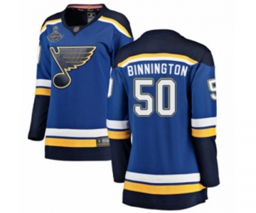 Women's St. Louis Blues #50 Jordan Binnington Fanatics Branded Royal Blue Home Breakaway 2019 Stanley Cup Champions Hockey Jersey
