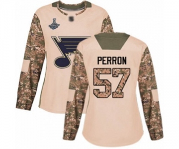 Women's St. Louis Blues #57 David Perron Authentic Camo Veterans Day Practice 2019 Stanley Cup Champions Hockey Jersey