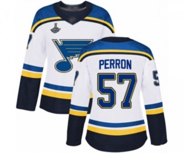 Women's St. Louis Blues #57 David Perron Authentic White Away 2019 Stanley Cup Champions Hockey Jersey