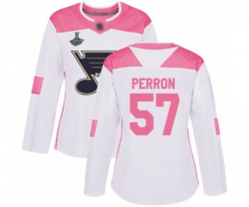 Women's St. Louis Blues #57 David Perron Authentic White Pink Fashion 2019 Stanley Cup Champions Hockey Jersey
