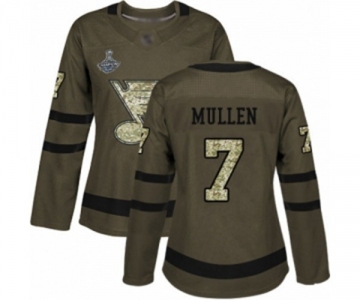 Women's St. Louis Blues #7 Joe Mullen Authentic Green Salute to Service 2019 Stanley Cup Champions Hockey Jersey