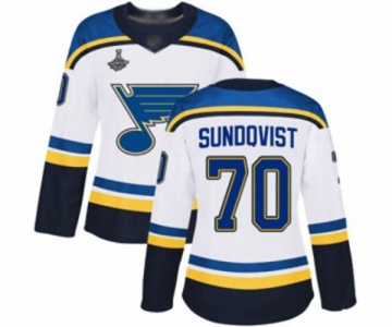 Women's St. Louis Blues #70 Oskar Sundqvist Authentic White Away 2019 Stanley Cup Champions Hockey Jersey