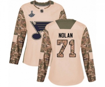Women's St. Louis Blues #71 Jordan Nolan Authentic Camo Veterans Day Practice 2019 Stanley Cup Champions Hockey Jersey