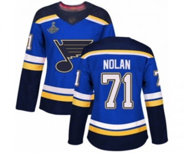Women's St. Louis Blues #71 Jordan Nolan Authentic Royal Blue Home 2019 Stanley Cup Champions Hockey Jersey