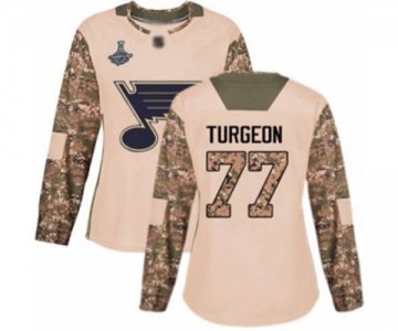 Women's St. Louis Blues #77 Pierre Turgeon Authentic Camo Veterans Day Practice 2019 Stanley Cup Champions Hockey Jersey