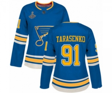Women's St. Louis Blues #91 Vladimir Tarasenko Authentic Navy Blue Alternate 2019 Stanley Cup Champions Hockey Jersey