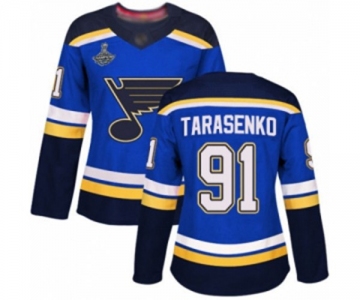 Women's St. Louis Blues #91 Vladimir Tarasenko Authentic Royal Blue Home 2019 Stanley Cup Champions Hockey Jersey
