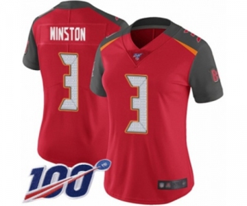 Women's Tampa Bay Buccaneers #3 Jameis Winston Red Team Color Vapor Untouchable Limited Player 100th Season Football Jersey