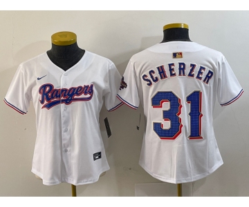 Women's Texas Rangers #31 Max Scherzer White 2024 Gold Collection Limited Cool Base Jersey