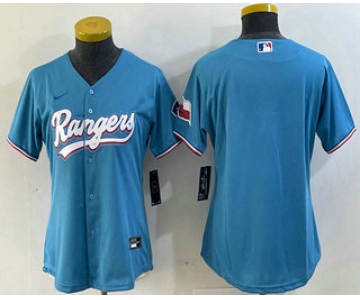 Women's Texas Rangers Blank Number Light Blue Team Logo Cool Base Jersey