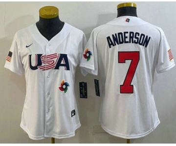 Women's USA Baseball #7 Tim Anderson 2023 White World Classic Stitched Jerseys