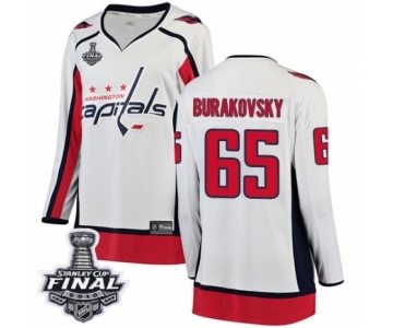 Women's Washington Capitals #65 Andre Burakovsky Fanatics Branded White Away Breakaway 2018 Stanley Cup Final NHL Jersey