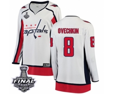 Women's Washington Capitals #8 Alex Ovechkin Fanatics Branded White Away Breakaway 2018 Stanley Cup Final NHL Jersey
