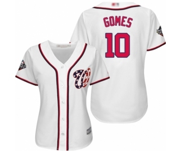 Women's Washington Nationals #10 Yan Gomes Authentic White Home Cool Base 2019 World Series Bound Baseball Jersey