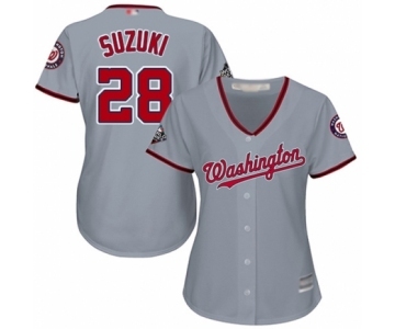 Women's Washington Nationals #28 Kurt Suzuki Authentic Grey Road Cool Base 2019 World Series Bound Baseball Jersey