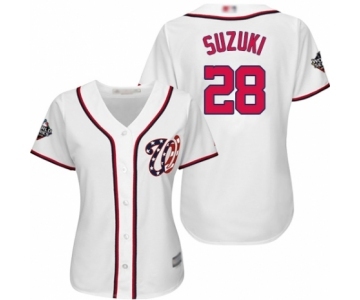 Women's Washington Nationals #28 Kurt Suzuki Authentic White Home Cool Base 2019 World Series Bound Baseball Jersey