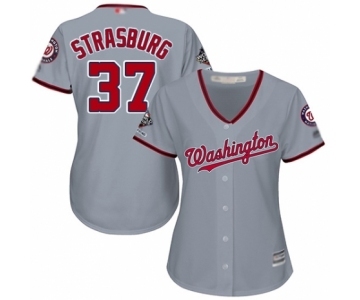 Women's Washington Nationals #37 Stephen Strasburg Authentic Grey Road Cool Base 2019 World Series Champions Baseball Jersey