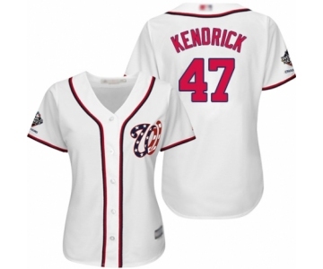 Women's Washington Nationals #47 Howie Kendrick Authentic White Home Cool Base 2019 World Series Champions Baseball Jersey