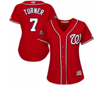 Women's Washington Nationals #7 Trea Turner Authentic Red Alternate 1 Cool Base 2019 World Series Bound Baseball Jersey