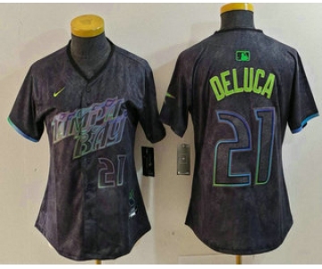 Women'sTampa Bay Rays #21 Jonny DeLuca Number Charcoal 2024 City Connect Limited Stitched Jersey