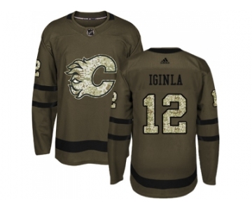 Youth Adidas Calgary Flames #12 Jarome Iginla Green Salute to Service Stitched NHL Jersey