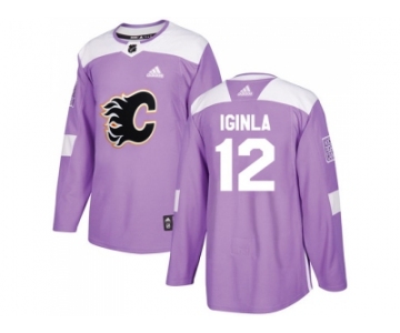 Youth Adidas Calgary Flames #12 Jarome Iginla Purple Authentic Fights Cancer Stitched NHL Jersey