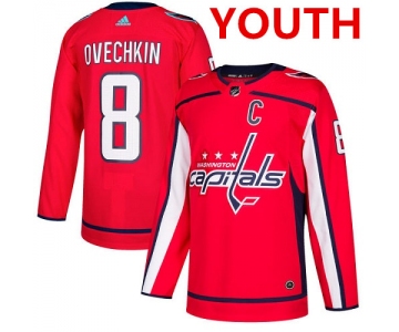 Youth Adidas Capitals #8 Alex Ovechkin Red Home Authentic Stitched NHL Jersey