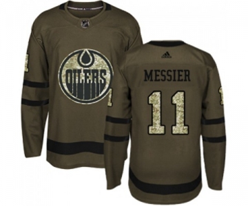 Youth Adidas Edmonton Oilers #11 Mark Messier Authentic Green Salute to Service NHL Jersey