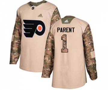 Youth Adidas Philadelphia Flyers #1 Bernie Parent Authentic Camo Veterans Day Practice NHL Jersey