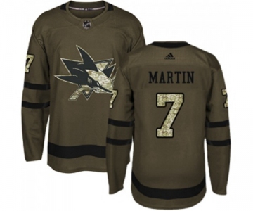 Youth Adidas San Jose Sharks #7 Paul Martin Authentic Green Salute to Service NHL Jersey