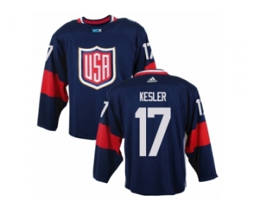 Youth Adidas Team USA #17 Ryan Kesler Premier Navy Blue Away 2016 World Cup Ice Hockey Jersey