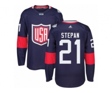 Youth Adidas Team USA #21 Derek Stepan Premier Navy Blue Away 2016 World Cup Ice Hockey Jersey