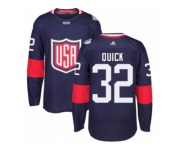 Youth Adidas Team USA #32 Jonathan Quick Authentic Navy Blue Away 2016 World Cup Ice Hockey Jersey
