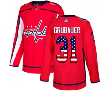 Youth Adidas Washington Capitals #31 Philipp Grubauer Authentic Red USA Flag Fashion NHL Jersey