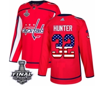 Youth Adidas Washington Capitals #32 Dale Hunter Authentic Red USA Flag Fashion 2018 Stanley Cup Final NHL Jersey