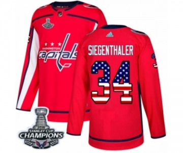 Youth Adidas Washington Capitals #34 Jonas Siegenthaler Authentic Red USA Flag Fashion 2018 Stanley Cup Final Champions NHL Jersey
