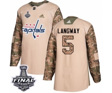 Youth Adidas Washington Capitals #5 Rod Langway Authentic Camo Veterans Day Practice 2018 Stanley Cup Final NHL Jersey