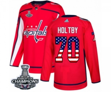 Youth Adidas Washington Capitals #70 Braden Holtby Authentic Red USA Flag Fashion 2018 Stanley Cup Final Champions NHL Jersey
