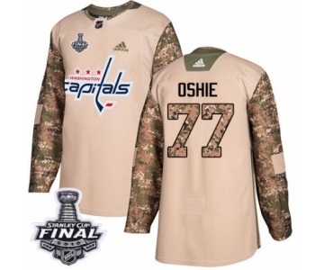 Youth Adidas Washington Capitals #77 T.J. Oshie Authentic Camo Veterans Day Practice 2018 Stanley Cup Final NHL Jersey