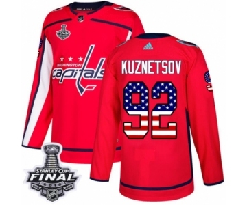 Youth Adidas Washington Capitals #92 Evgeny Kuznetsov Authentic Red USA Flag Fashion 2018 Stanley Cup Final NHL Jersey