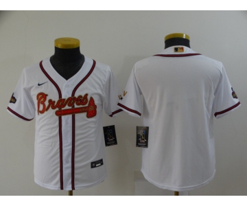 Youth Atlanta Braves Blank 2022 White Gold World Series Champions Program Cool Base Stitched Jersey