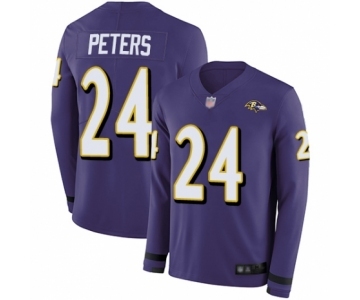 Youth Baltimore Ravens #24 Marcus Peters Limited Purple Therma Long Sleeve Football Jersey