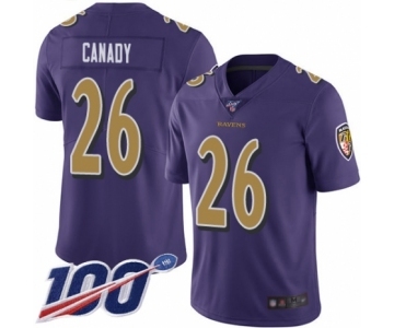 Youth Baltimore Ravens #26 Maurice Canady Limited Purple Rush Vapor Untouchable 100th Season Football Jersey