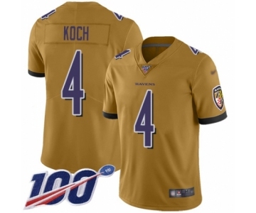 Youth Baltimore Ravens #4 Sam Koch Limited Gold Inverted Legend 100th Season Football Jersey