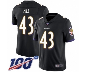 Youth Baltimore Ravens #43 Justice Hill Black Alternate Vapor Untouchable Limited Player 100th Season Football Jersey