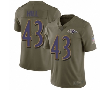 Youth Baltimore Ravens #43 Justice Hill Limited Olive 2017 Salute to Service Football Jersey
