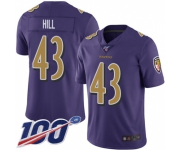 Youth Baltimore Ravens #43 Justice Hill Limited Purple Rush Vapor Untouchable 100th Season Football Jersey